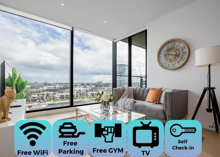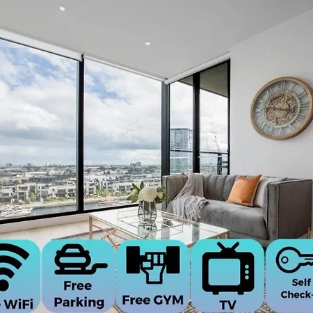 Localizado a 3.8 km do Recinto de Críquete de Melbourne, o apartamento Delightful 2Br Riverview@Docklands Melbourne fica a 20 minutos a pé do local ideal para famílias como o Aquário de Melbourne.